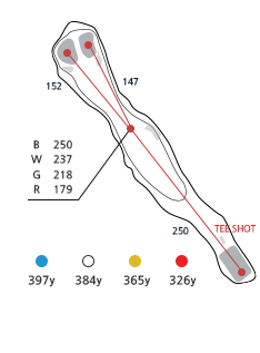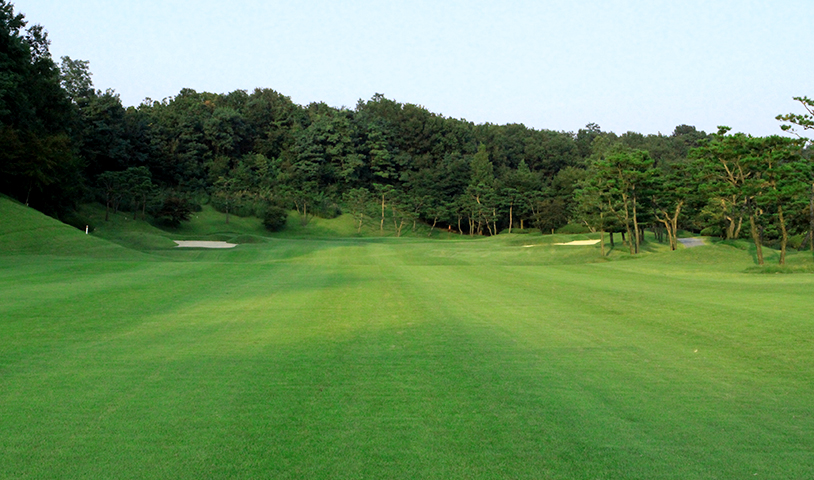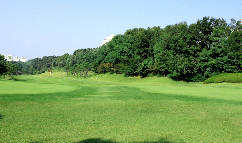 좌측법면 위로는 OB이며, 티샷은 우측으로는 벙커가 있어 가운데보다 좌측으로 공략해야 세컨샷이 유리합니다. 장타일 경우 간혹 우측 아스팔트에 튕겨서 신6홀 해저드에 들어가기도 합니다. 신코스의 Longest홀 입니다