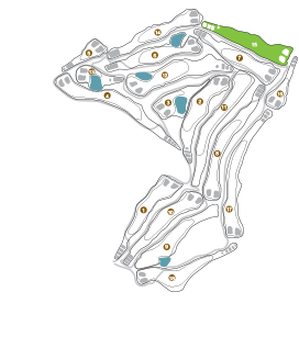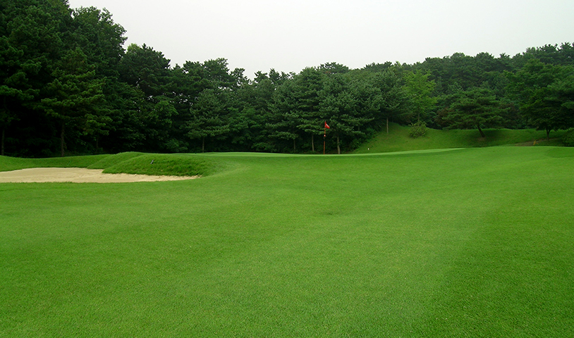 좌측 법면 위로 올라가면 OB이며, 짧은 미들홀로 시각적으로 길어보이는 홀입니다.